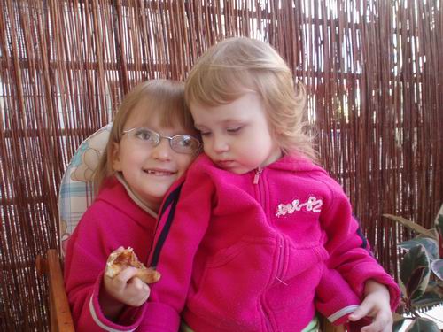 Oto zdjęcie dziewczynek - Agatka to dziewczynka w okularkach, obok to