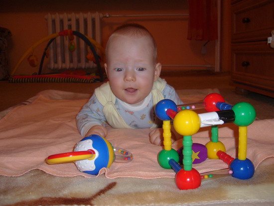 chorobie i próbuje siadać i pełzać, a idzie mu coraz lepiej. Kamil