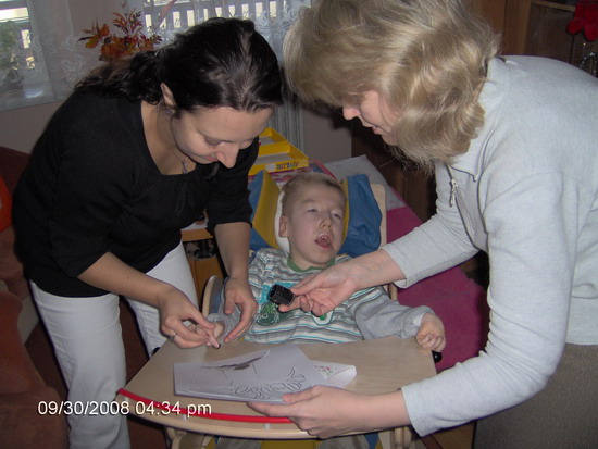 Oskarek nie siedzi, nie mówi, kontakt z nim jest bardzo ograniczony.