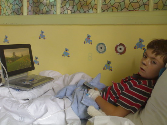 częstych pobytów w szpitalu, jest pogodnym chłopcem. Uwielbia wszystko,