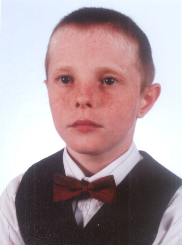 ma 13 lat. Chłopiec cierpi na głęboki niedosłuch i wymaga stosowania aparatów słuchowych.