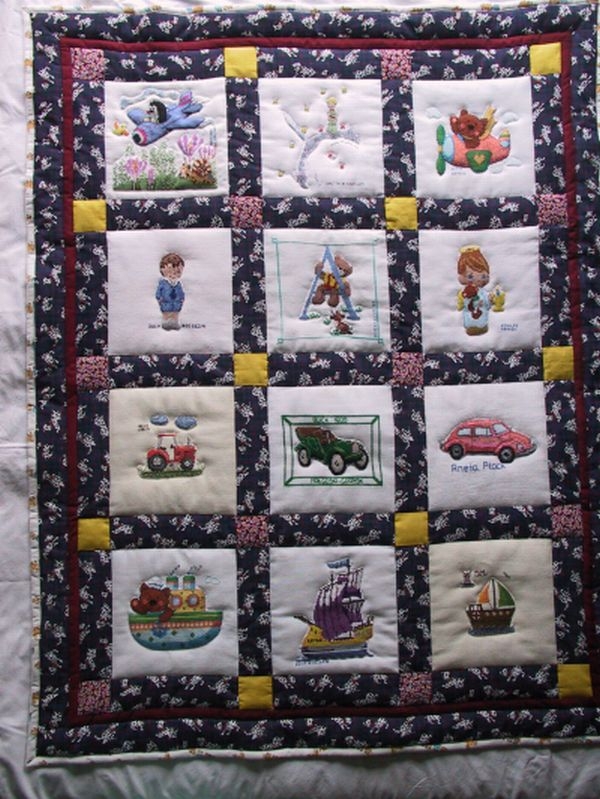 krecik w samolocie i literka Zobacz galerię kwadratów, z których została uszyta ta kołderka
