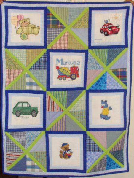 Męsk± kołderkę z duuuż± ilo¶ci± barwnych kwadratów uszyła dla Mariuszka