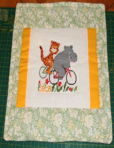Dla Oli - Aniu¶ uszyła poduszkę z wyszytymi przez BB zwierzętami na rowerze,