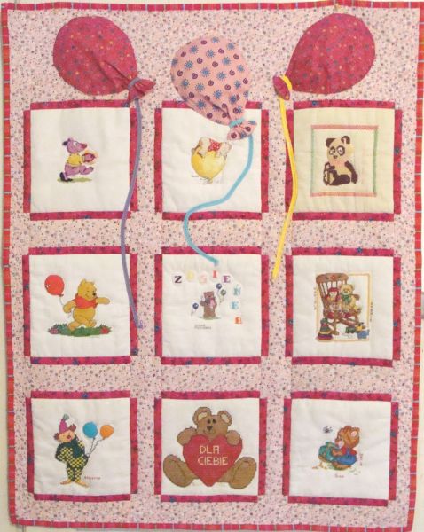 Słodką różową kołderkę z kolorowymi balonikami uszyła dla Zosi Cebulka czyli Ula z Warszawy.