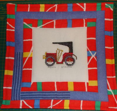 Kubuś - uszytą przez Celinę z Elbląga z wyhaftowanym przez Bogusię z Gniewkowa zabytkowym autkiem