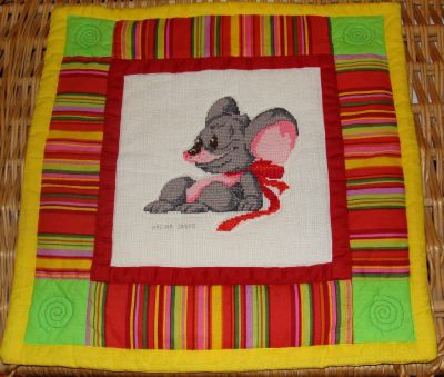 Dla Julii została przygotowana poduszeczka, uszyta przez Seremity z Adudi z wyszytą przez Halinę z Jasła myszką.