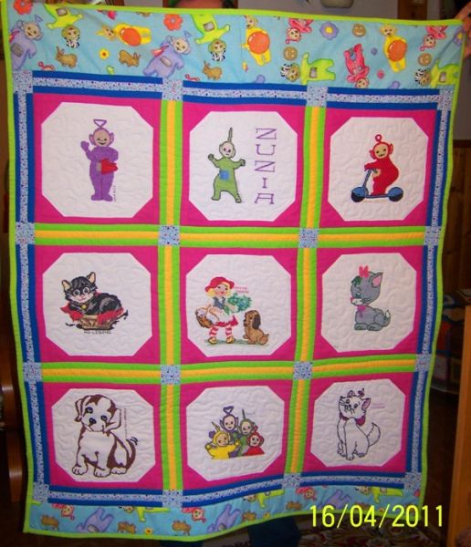 Majola z Warszawy uszyła kołderkę dla Zuzi miło¶niczki Teletubisiów.
