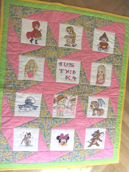 Róż dominuje na tej kołderce, bo Justynka jest miłośniczką lalki Barbi.