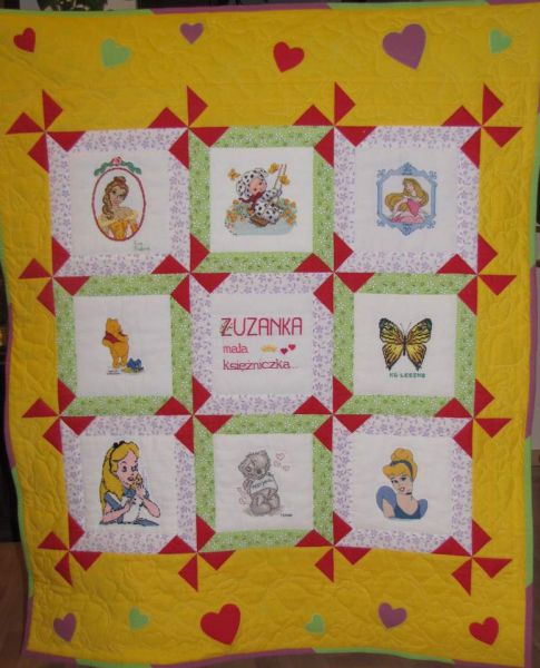 księżniczki - śliczną kołderkę z wiatraczkami i serduszkami. O powstawaniu