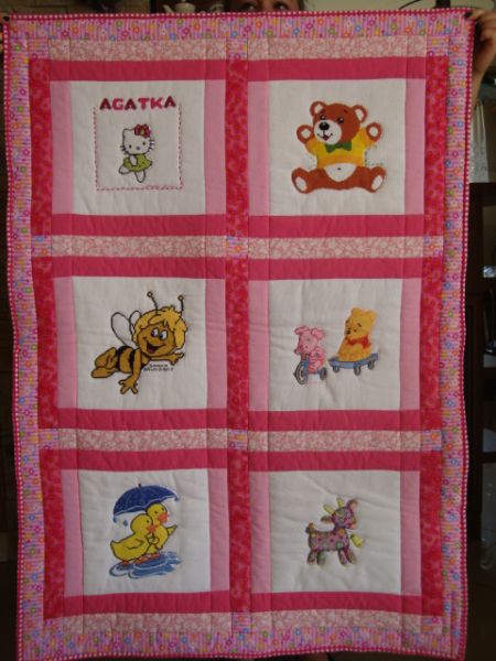 Słodko różową kołderkę dla Agatki uszyła Kornelia z Piekar Śląskich. Ciemniejsze