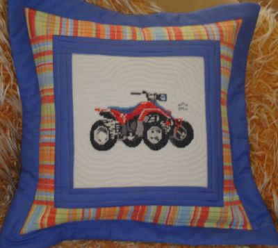 Filip, brat Agatki, otrzymał ekstra poduchę z quadem wyszytym przez