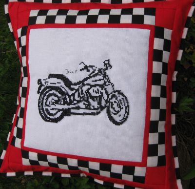 Jolcię poduszkę z motorem wyszytym przez