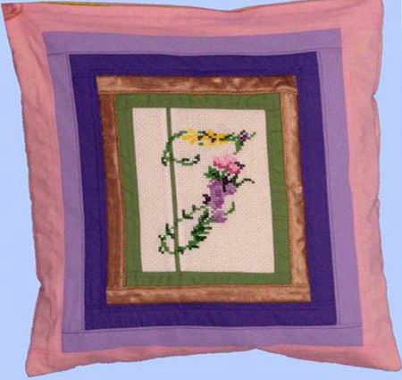 kołderki Magda przygotowała również poduszeczke z inicjałem wyhaftowaną