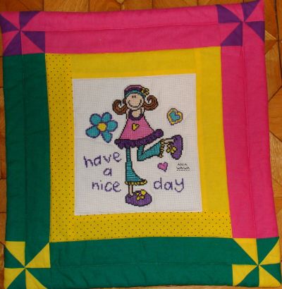 Julka otrzymała poduszkę z haftem wesołej