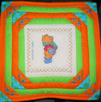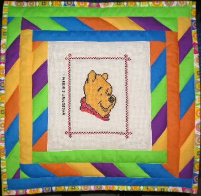 na których Maria z Jaworzna wyhaftowała Kubusia Puchatka.