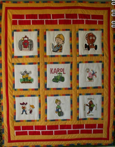Bob Budowniczy otacza kołderkowe podwórko murkiem, żeby bajkowi goście, którzy