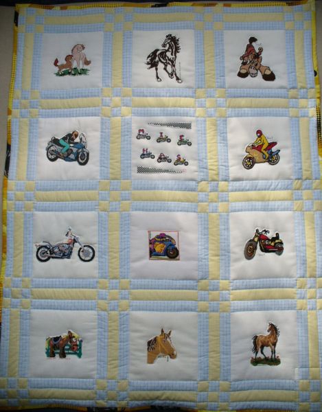 Wyszyte są dwie miłości Michała - konie i motory. Są tu konie różnej maści,i w różnym wieku,