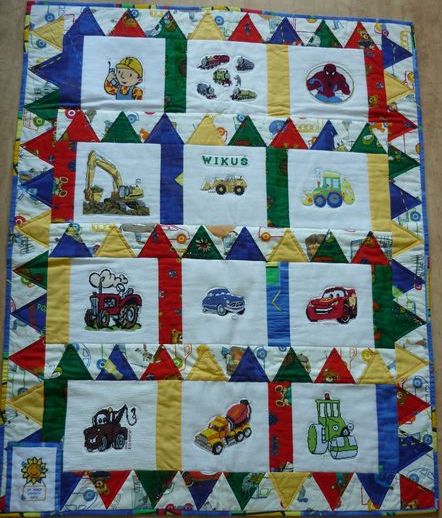 Wikusia interesują samochody i ciężkie maszyny, więc ciocie wyszyły mu koparki,