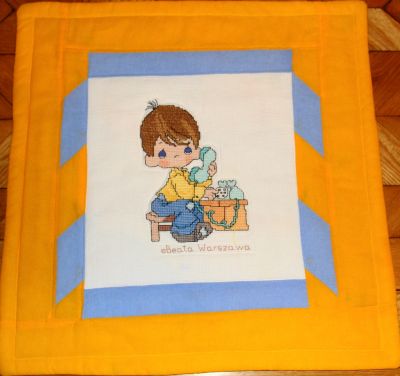 Ewa 55 uszyła też poduszkę dla brata Karoliny, Tymka, z haftem autorstwa Beaty z Warszawy.