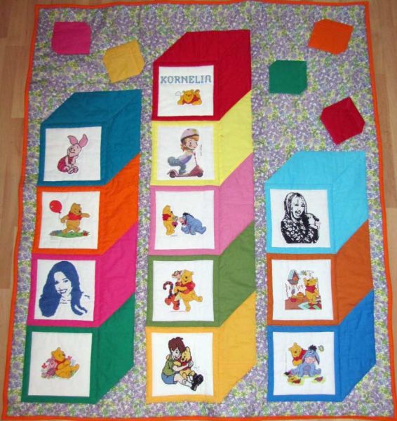 To wspaniała klockowa kołderka. Kornelia bardzo lubi Kubusia Puchatka, więc Kubuś