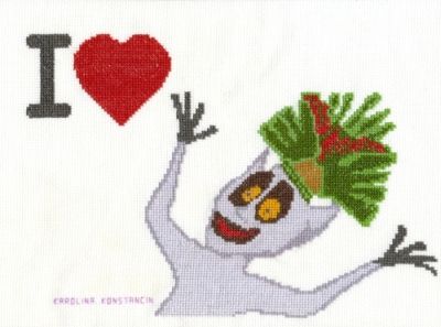 zaprojektowała i wyszyła kwadracik z ulubionym królem Julianem. Karteczki wykonały