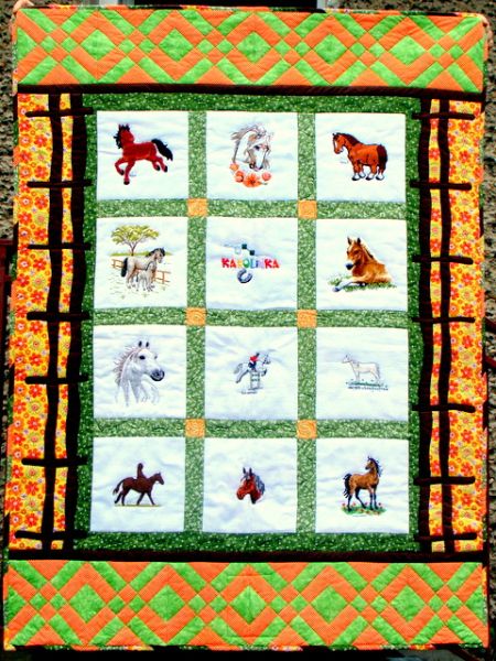 Karolinka kocha konie, więc właśnie one znalazły się na kołderce, którą przygotowałyśmy dla dziewczynki.
