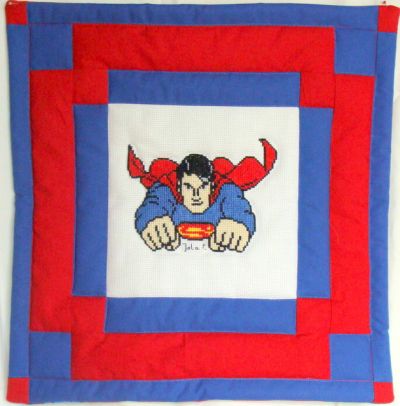 Kołderkowe ciocie wyhaftowały piękne, realistyczne kwadraciki, a przyjemność uszycia przytulanki przypadła Grażce (Grażynie z Pszczyny).