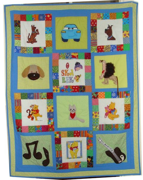 Jest to kołderka mieszana - w połowie paluszkowa, a w połowie haftowana. Na wyszywanych