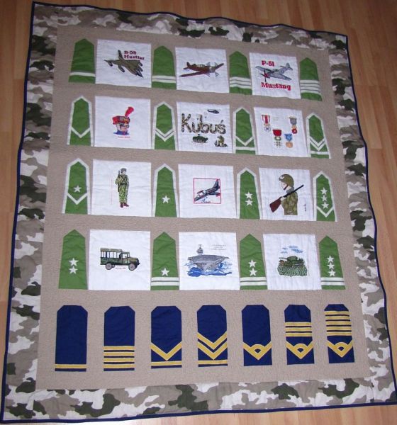 Kubu¶ to miło¶nik militariów. Na kołderce znajdzie żołnierzy, samoloty i pojazdy