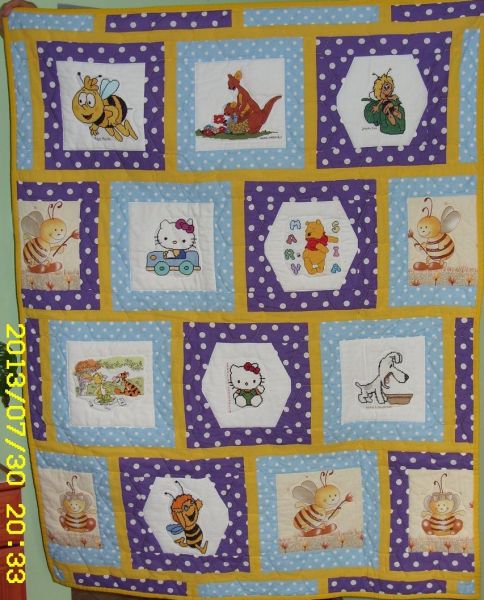 Ciocia Nusia dodatkowo ozdobiła kołderkę obrazkami z wesołymi pszczółkami,