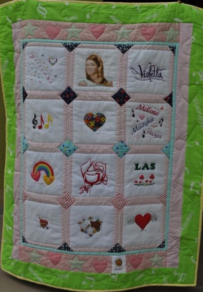 inne pozytywne symbole. To bardzo optymistyczna, radosna kołderka.