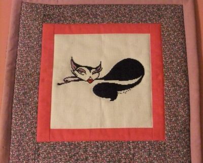 Ciocia Ewa z Warszawy uszyła poduszkę z kotem wyszytym przez