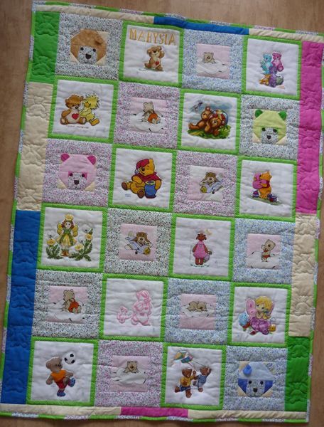 Kołderka jest słodka, a Renia oprócz haftowanych misiów umieściła również patchworkowe misie