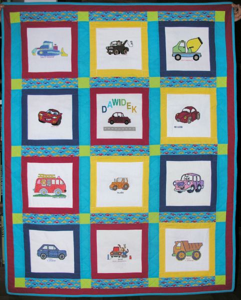 dla Dawida. Dawid bardzo lubi bawić się samochodami. Na kołderce Dawida znalazły się