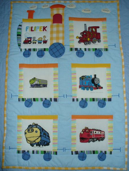 pociągi i jest ich sporo na kołderce. To kołderka przyszłego kolejarza