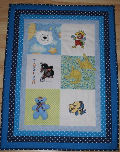 Są na niej motywy ciekawe dla paluszków chłopca - meduzy i misie, oraz wyszywane