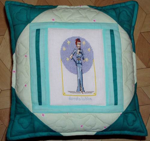 z kwadracików wyszytych przez Dorotkę z Lublina. Poduszeczki są