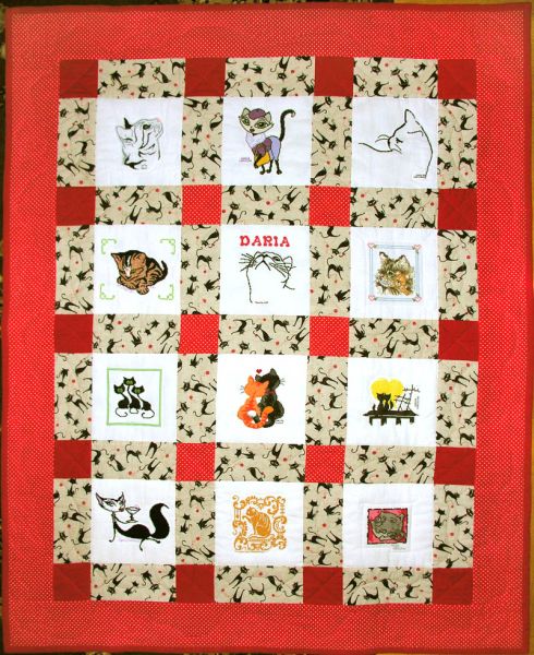 z motywami kotów. Ciocia Jadwisia z Warszawy zszyła