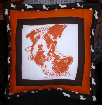 Poduszkę dla siostry uszyła Jadwisia z Warszawy z haftem