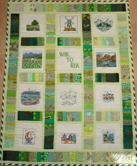 jest zielona. Na kwadratach tematyka jakże rzadka wśród kołderkowych zgłoszeń -