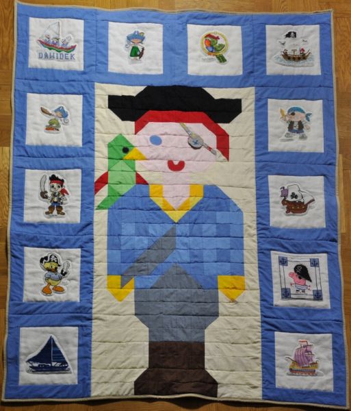 życiem piratów. Mama, wiedząc o tym, poprosiła dla synka o kołderkę piracką. Ciocie wzięły się