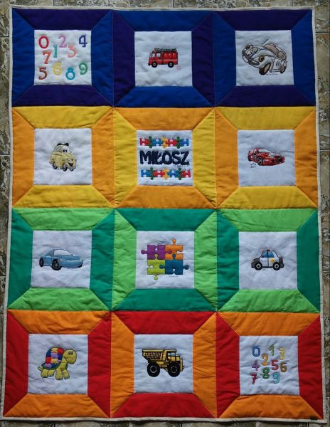 Ciocia MKatarynka z Krakowa uszyła śliczną kołderkę dla Miłosza.