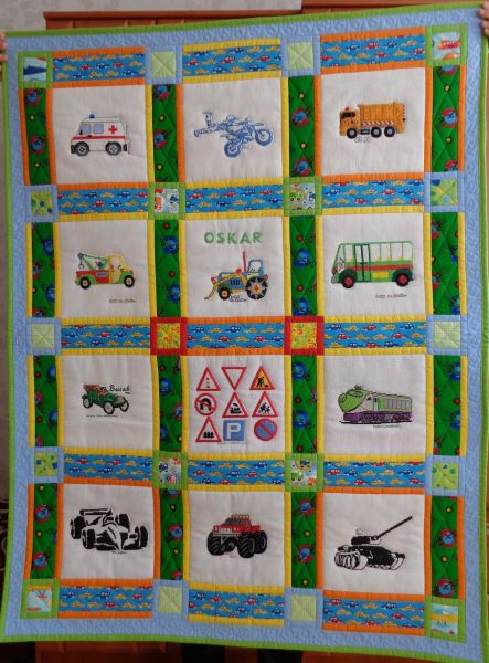 Chłopiec interesuje się pojazdami i dlatego kołderka Oskara jest ich pełna.