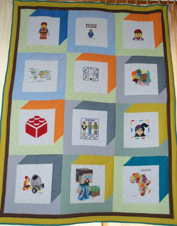 Klocki Lego to jego pasja i one znalazły się na kołderce. Kacper lubi grać w Minecraft