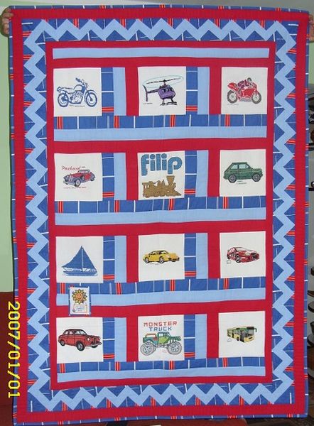 Filip interesuje się pojazdami i to one znalazły się na kołderce.