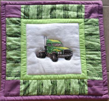 a haftowane kwadraty z motorami obszyła kolorowym materiałem.