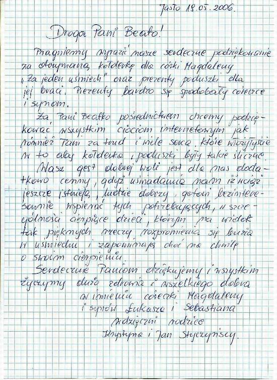 Otrzymali¶my od Rodziców Magdy list z podziękowaniem i z ogromn±