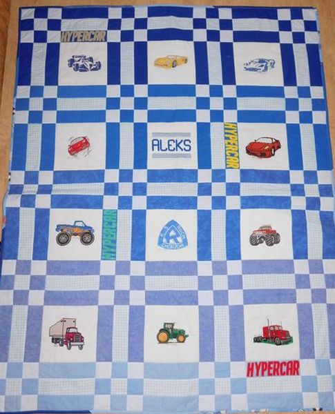 Chłopiec interesuje się motoryzacją, więc kołderkowe