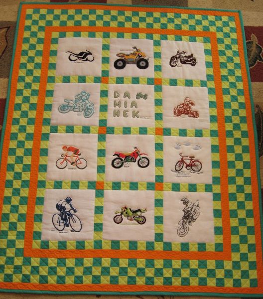 Damian jest miłośnikiem dwóch kółek i cioteczki wyszyły rowery i motory.